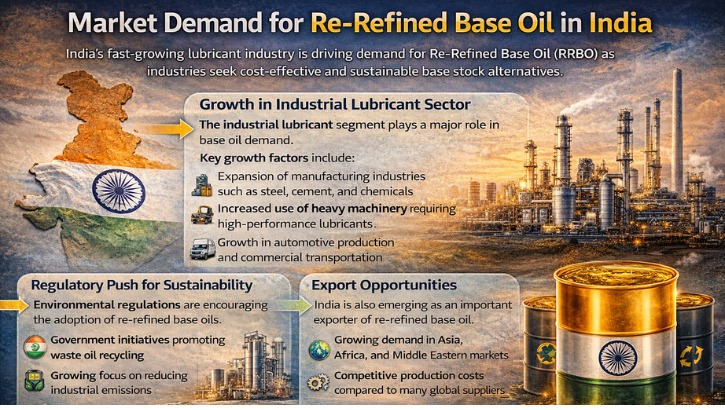 India’s lubricant industry is expanding steadily due to rapid industrialization, automotive growth, and increasing demand for high-performance lubricants. As industries seek cost-effective and sustainable base stock alternatives, Re-Refined Base Oil (RRBO) is gaining strong market traction. According to the International Energy Agency, India is one of the fastest-growing energy markets, with industrial activity continuing to drive lubricant consumption across manufacturing, transportation, and heavy machinery sectors.